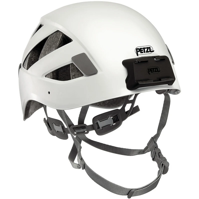 Stevige helm met valbescherming aan de zijden en bevestigingssysteem voor Petzl Duo hoofdlampen